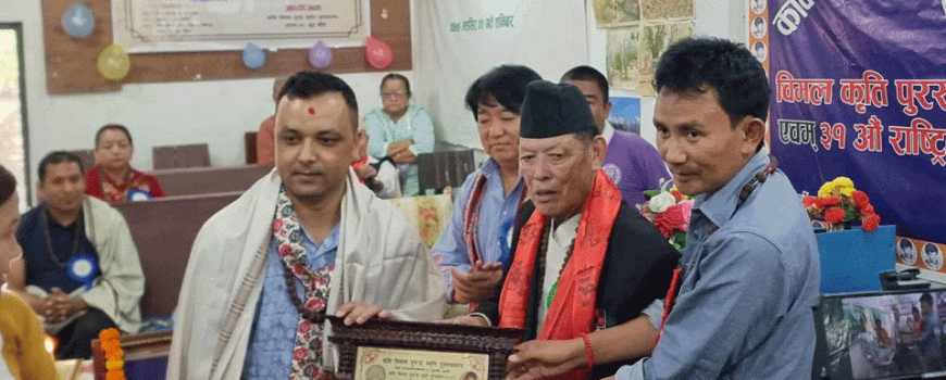 धरान : कवि विमल गुरुङ स्मृति पुस्तकालयमा बुधवार आयोजित ५४औँ जन्मजयन्ती समारोहमा २ लाख रुपैया राशीको विमल गुरुङ कृति पुरस्कार ‘सिमसारा’