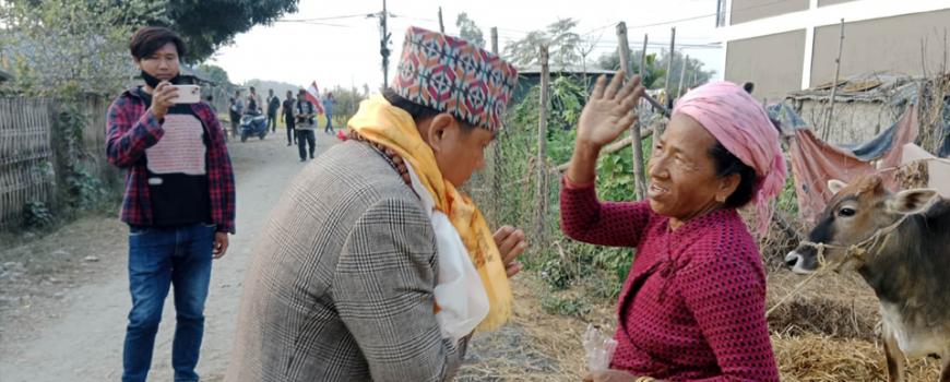सुनसरी १ मा काँग्रेसका सुजेन्द्र आशीर्वाद लिँदै मत माग्दै