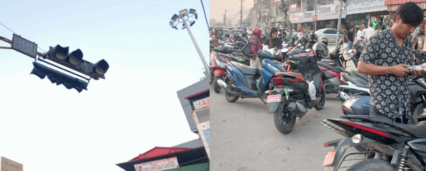 ट्राफिक लाइट बिग्रिएपछि इटहरी चोक अस्तव्यस्त, भित्री बजार पार्किङले उकुसमुकुस