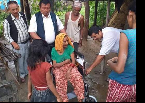 पथरी: मोरङको पथरी शनिश्चरे नगरपालिका कार्यालयले वडा नम्वर ३ का अपाङ्गताको समस्या भोग्दै आएका एकजना महिलालाई हिड्न सजिलोका लागि ह्विल चि