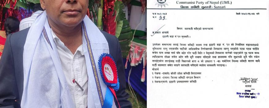 इटहरी १७ का वडा अध्यक्षलाई एमालेले गर्‍यो कारबाही