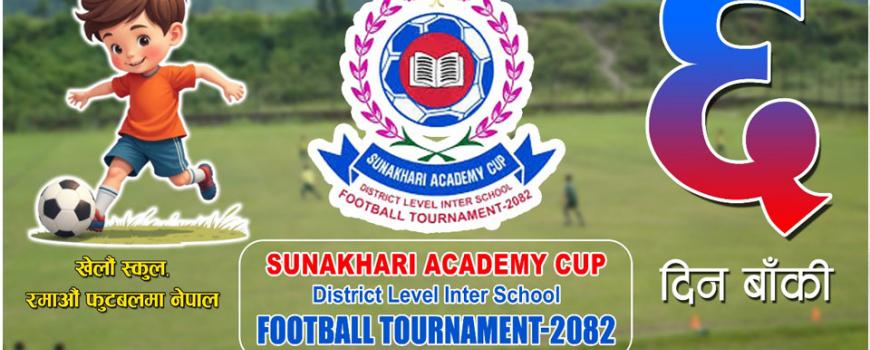 धरान : सुनसरी जिल्ला स्तरीय अन्तर विद्यालय ‘सुनाखरी एकेडेमी कप’ फुटबल प्रतियोगितामा १४ विद्यालय सहभागी रहने आयोजक धरान-१२ स्थित सुनाखरी