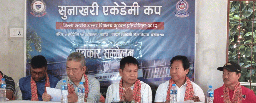 धरान: धरानमा सुनसरी जिल्ला स्तरीय‘सुनाखरी एकेडेमी कप’ अन्तर विद्यालय फुटबल प्रतियोगिता हुने भएको छ । मङ्सिर ७ देखि १७ गतेसम्म सञ्चालन ह