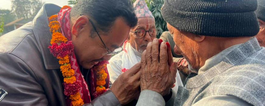 सुनसरी १ मा काँग्रेसका सुजेन्द्र आशीर्वाद लिँदै मत माग्दै